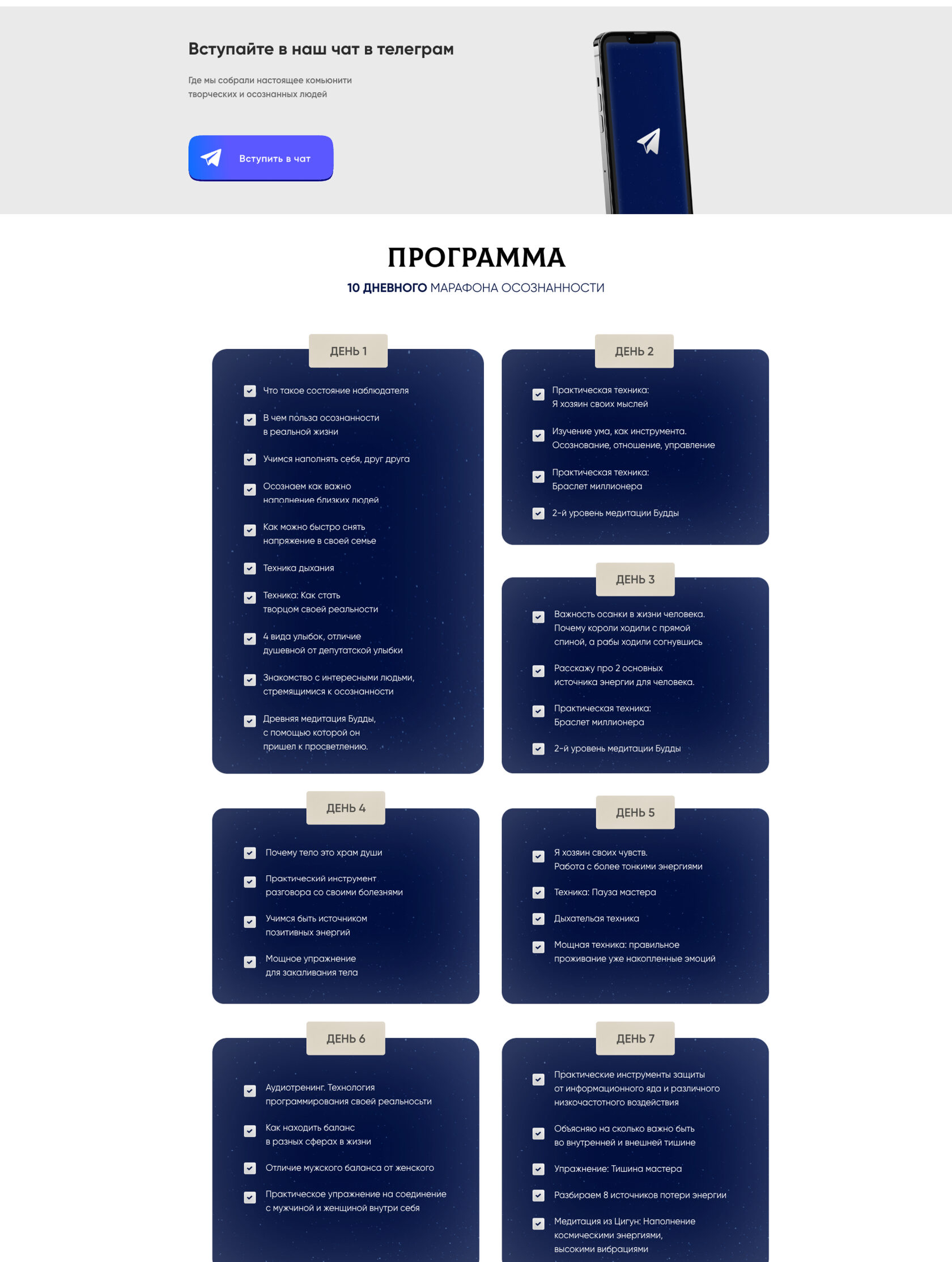 Онлайн марафон осознанности в телеграм канале